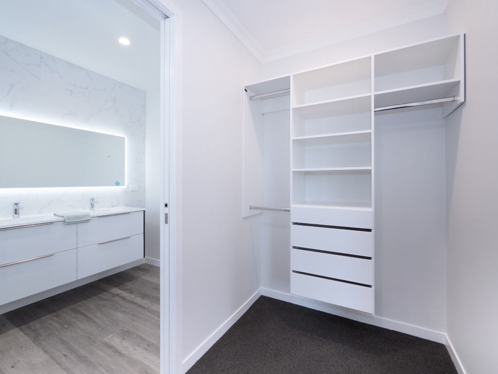 Kitchens have been designed with the open plan space in mind and to incorporate that feeling of connectivity with others in the living areas. Finished with quality cabinetry and draws with soft close hinges, natural or manufactured stone benchtops. For the family chef there is high spec European Appliances from 900mm Induction Cooktop with a Range Hood to suit, Pyrolytic Ovens and Dishwasher.