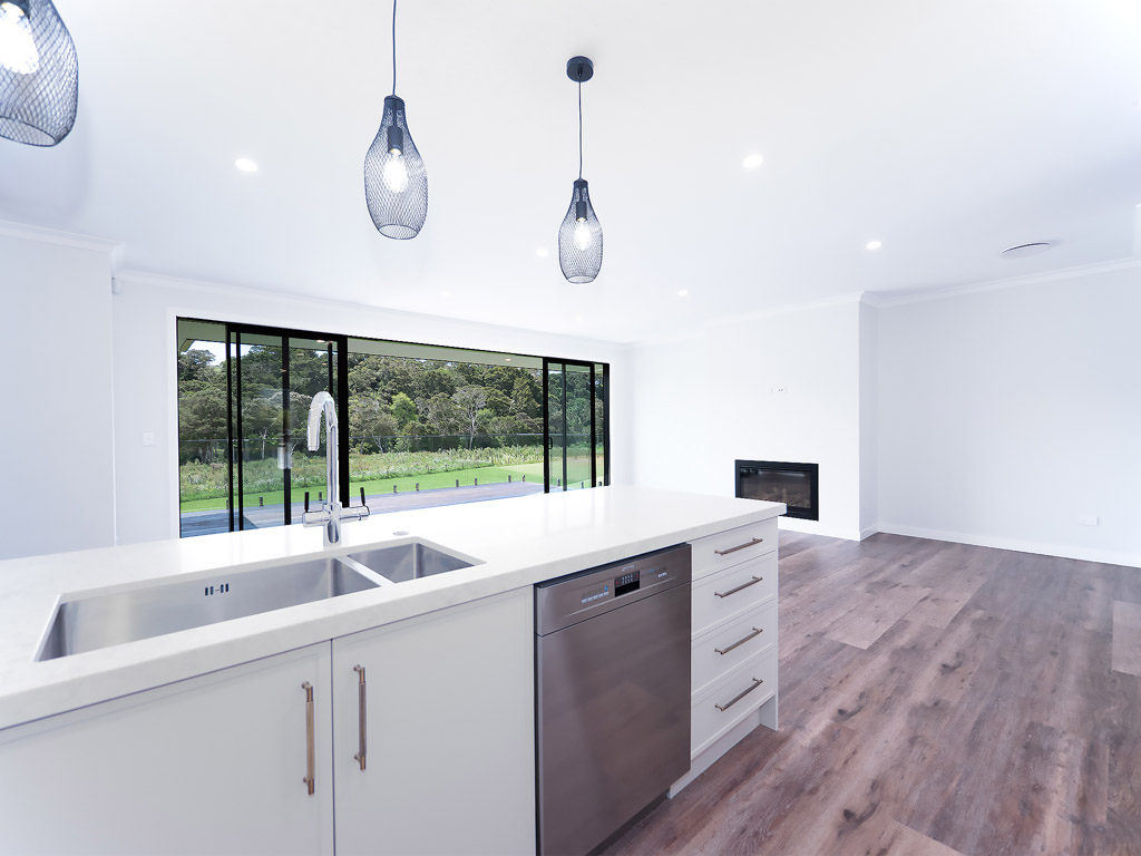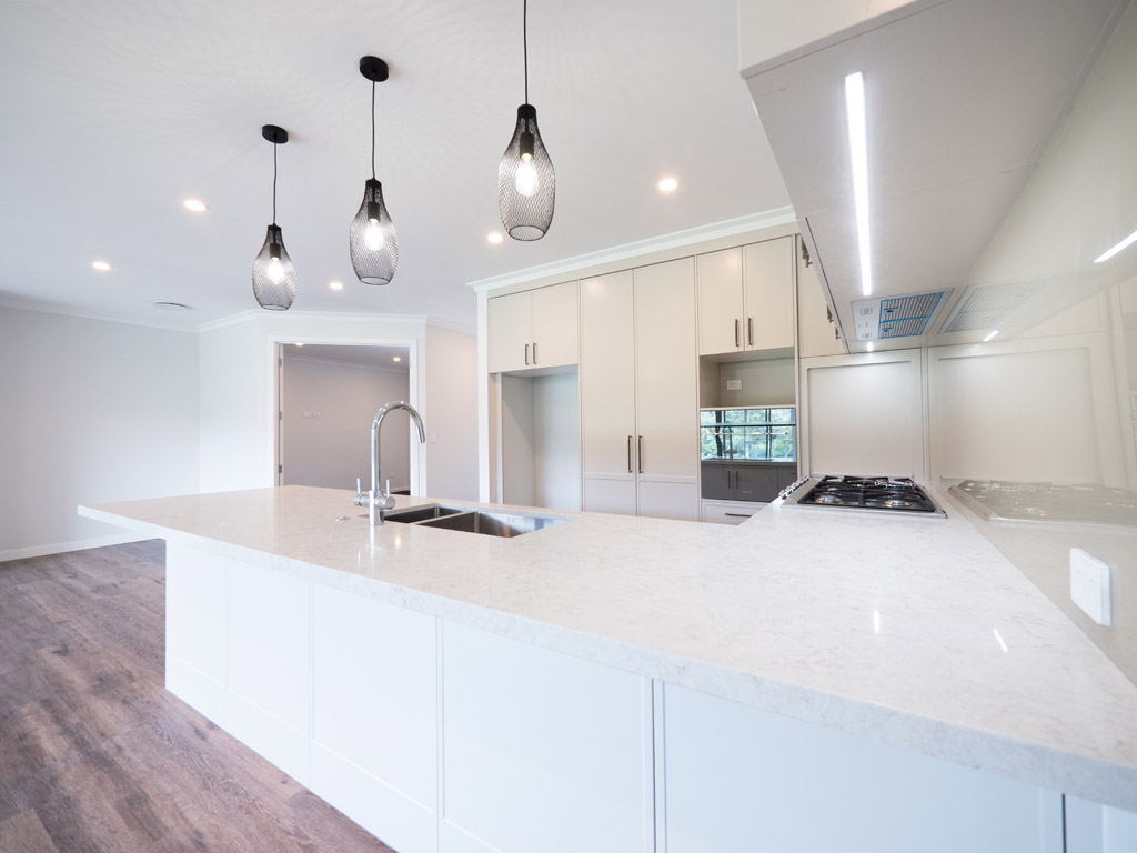 Kitchens have been designed with the open plan space in mind and to incorporate that feeling of connectivity with others in the living areas. Finished with quality cabinetry and draws with soft close hinges, natural or manufactured stone benchtops. For the family chef there is high spec European Appliances from 900mm Induction Cooktop with a Range Hood to suit, Pyrolytic Ovens and Dishwasher.